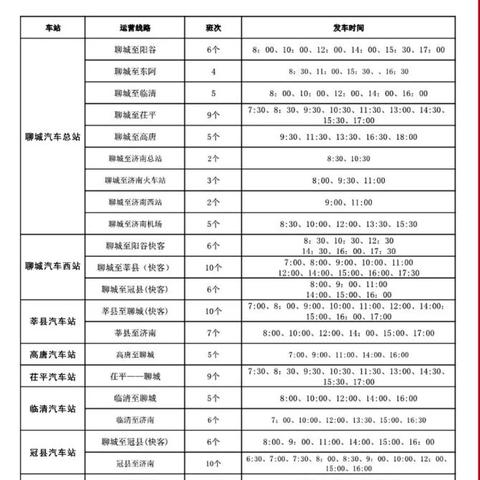 3、聊城至青岛:每日共有XX趟列车发出,最早一班车次为KXXXX次,发车时间为早上XX点整;最晚一班车次为KXXXX次,发车时间为晚上XX点整,途经济南站等站点,全程大约需要XX小时。